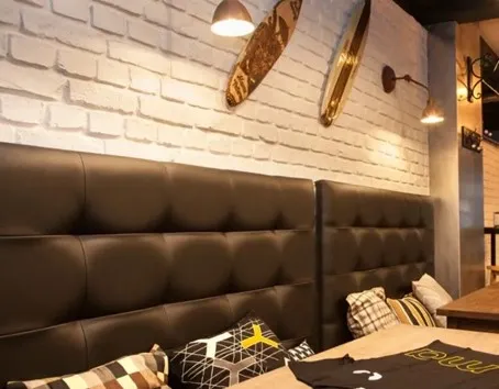 Le panneau Macizo a été sélectionné dans plusieurs réalisations JMT : restaurant branché en brique rouge, bar à tapas londonien, restaurant aux murs de brique blanche ou décor d’inspiration Brooklyn. Selon la teinte choisie, le revêtement mural peut tirer vers une ambiance loft, bistrot ou salle plus lumineuse.