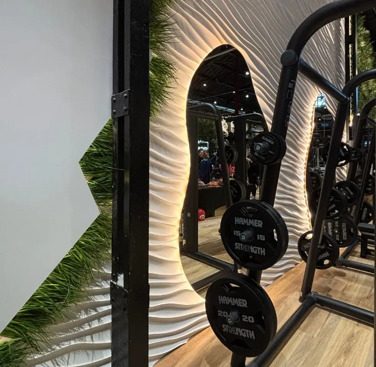 One Fitness Club Strasbourg : panneaux Magnolia 3D Martinique blanc pour un décor sportif moderne, lumineux et dynamique.