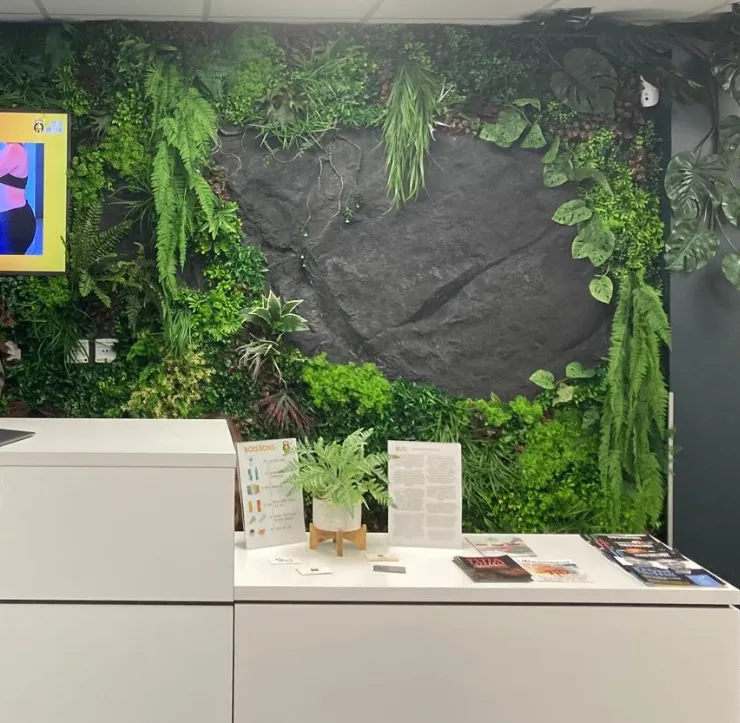 La pose a été réalisée par CRAZYWALL, garantissant un rendu soigné et une intégration harmonieuse du revêtement dans cet espace recevant du public.