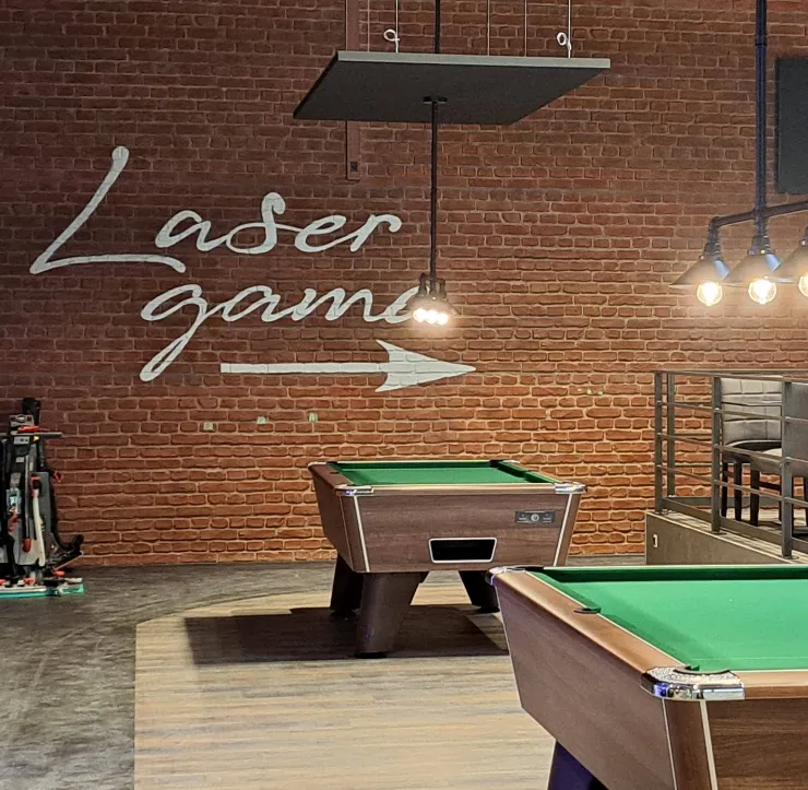 Le Seven Square de Saint-Étienne adopte les panneaux brique Macizo rouge foncé pour un décor industriel chaleureux et adapté à un lieu de loisirs.