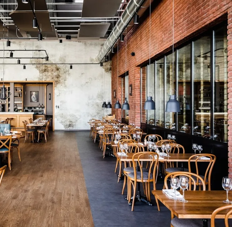 Le relief des briques et leur teinte profonde renforcent le caractère de l’espace, tout en offrant une solution décorative durable et facile à mettre en œuvre, parfaitement adaptée aux lieux recevant du public.