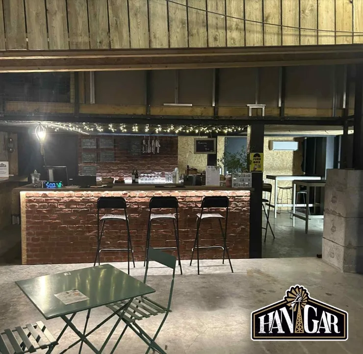 Les briques Macizo créent une atmosphère conviviale et structurée, soulignant l'esprit brut et moderne recherché par Le Hangar.