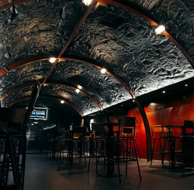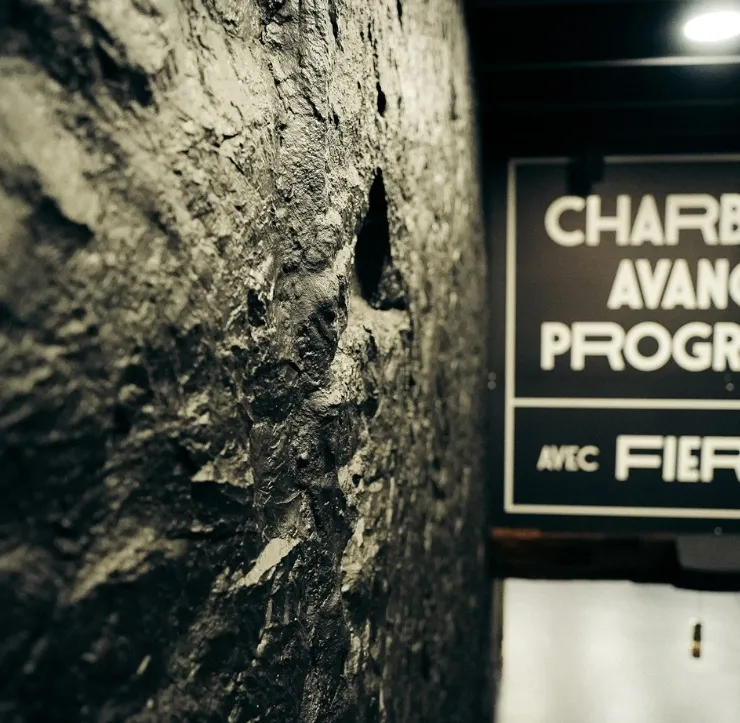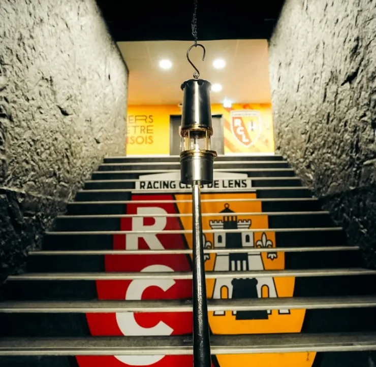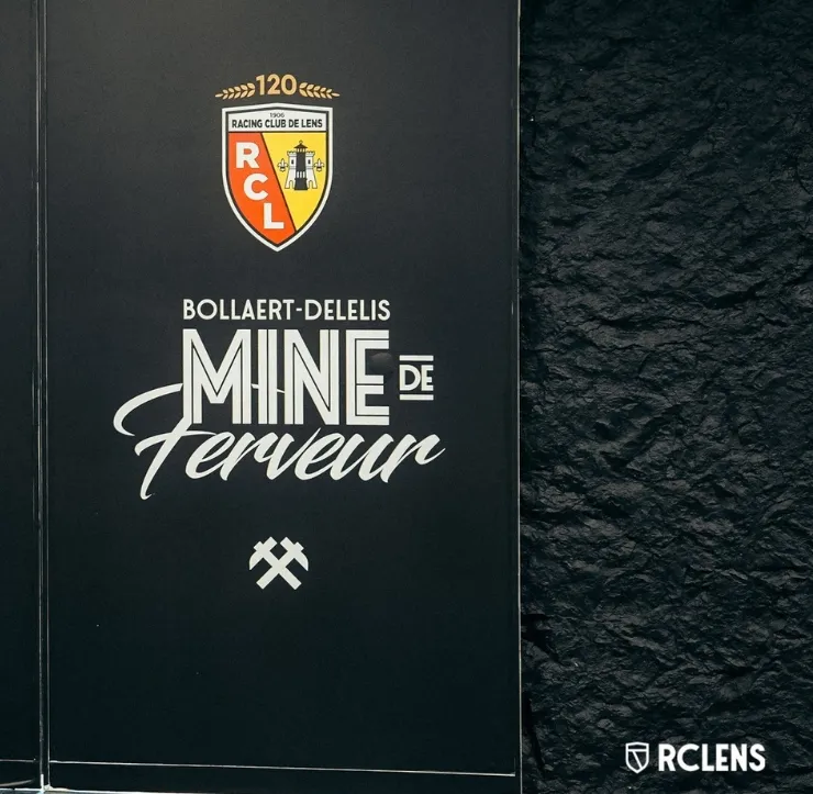 Au stade Bollaert-Delelis, l’entrée des joueurs et le salon VIP ont été habillés avec nos panneaux Roche Noire pour recréer un décor unique, inspiré de l’univers minier si cher à l’histoire du RC Lens.